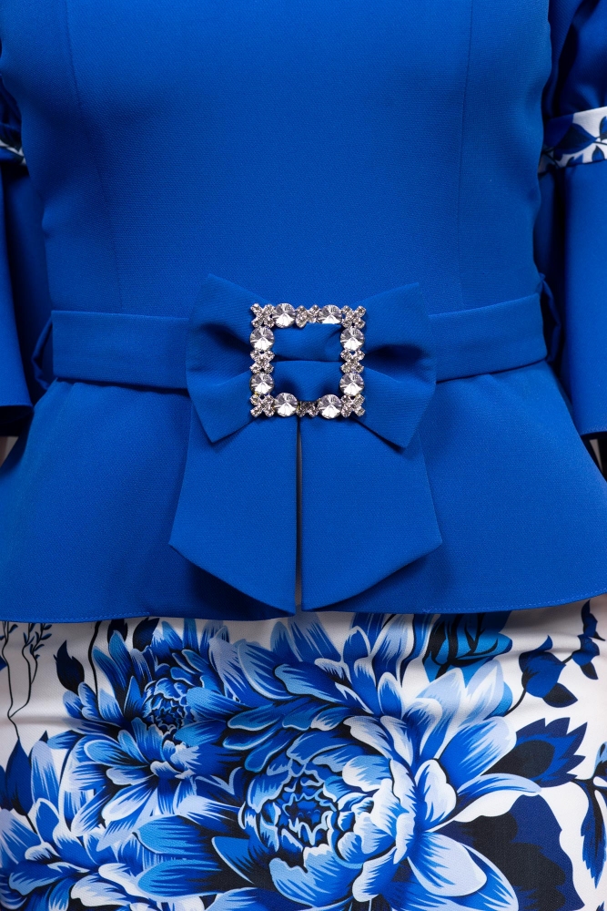 El vestido Mirabelle destaca por su estampado especial, su corte que realza armoniosamente la silueta y sus detalles cuidadosamente seleccionados, completado con un elegante accesorio con cristales que aporta un extra de sofisticación. Es una elección ideal para eventos especiales, donde el estilo clásico se fusiona perfectamente con la feminidad moderna.